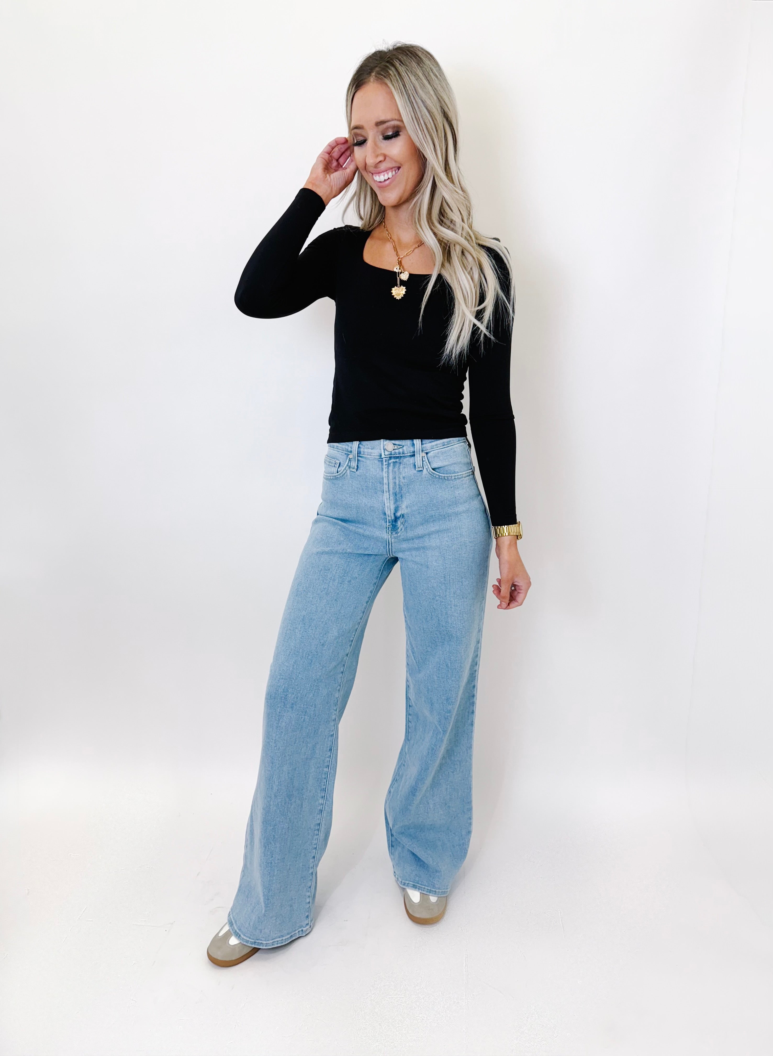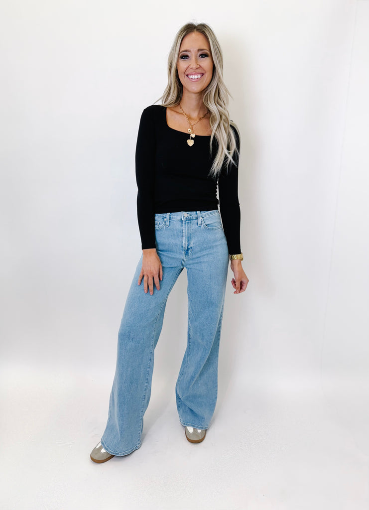 Black Square Neck Long Sleeve Top - L/XL is backordered and will ship as soon as it is back in stock.