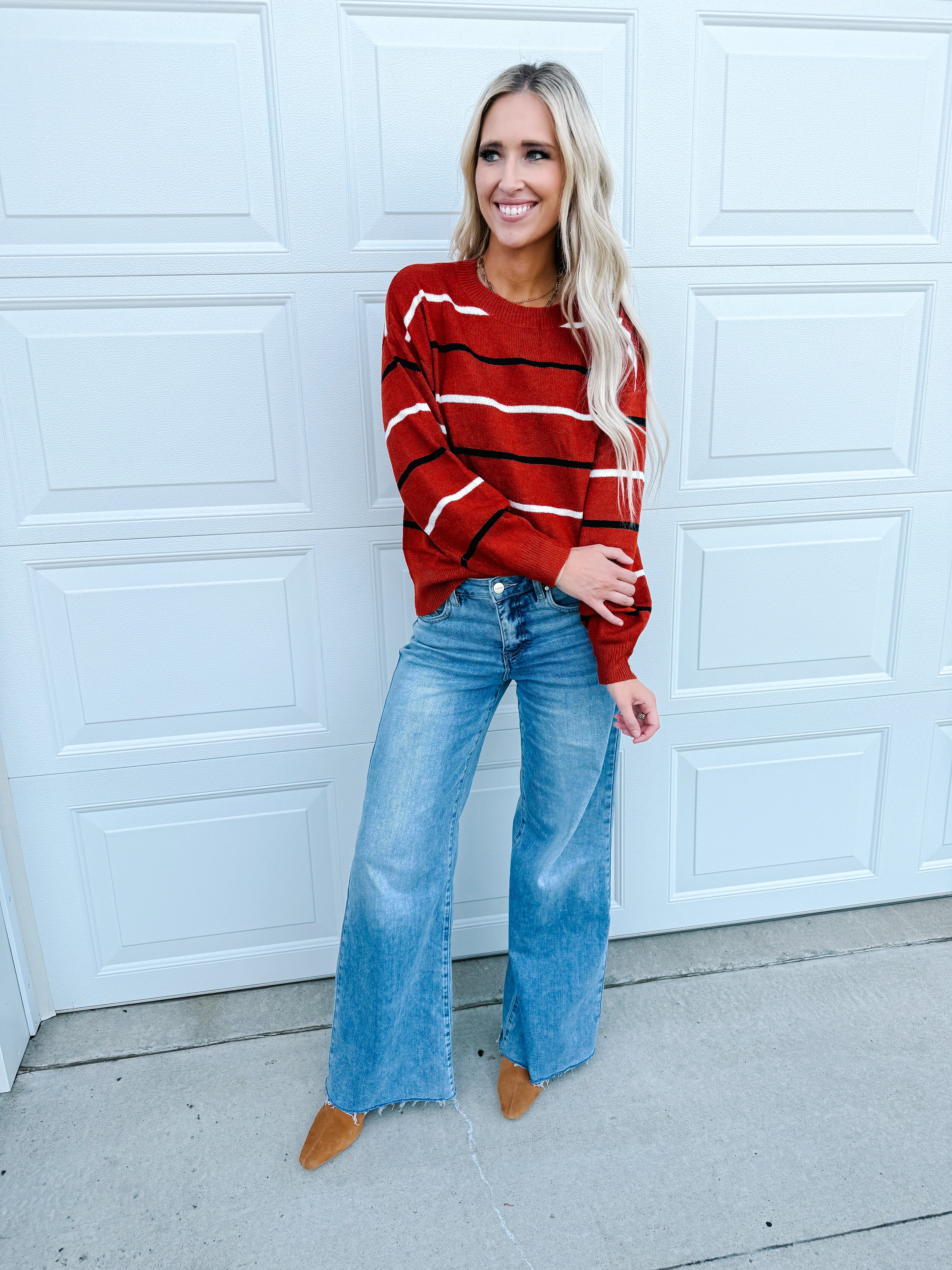 - Elevate everyday style with this sweater, perfect for a trendy and relaxed look with its casual design and striped pattern.