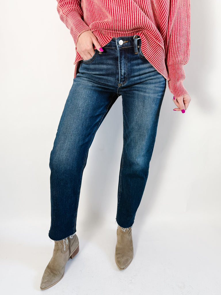 RISEN 4 Way Stretch Mid Rise Barrel Jeans with Patch Pocket Detail