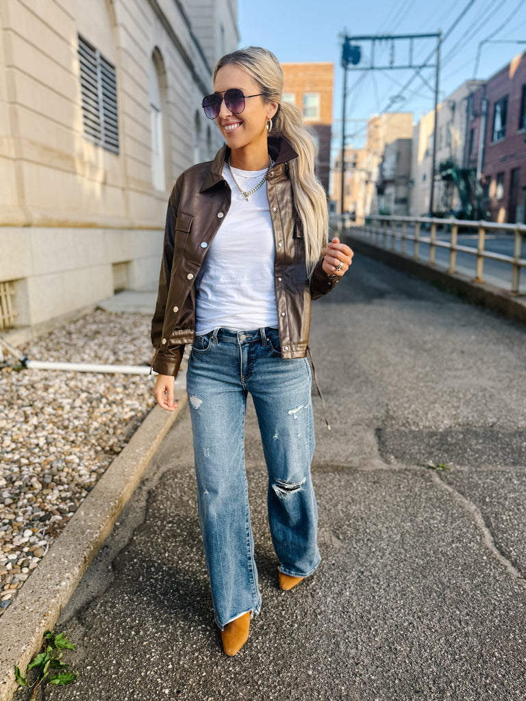 Parchment Contrast Leather Collar Textured Zip Up Jacket