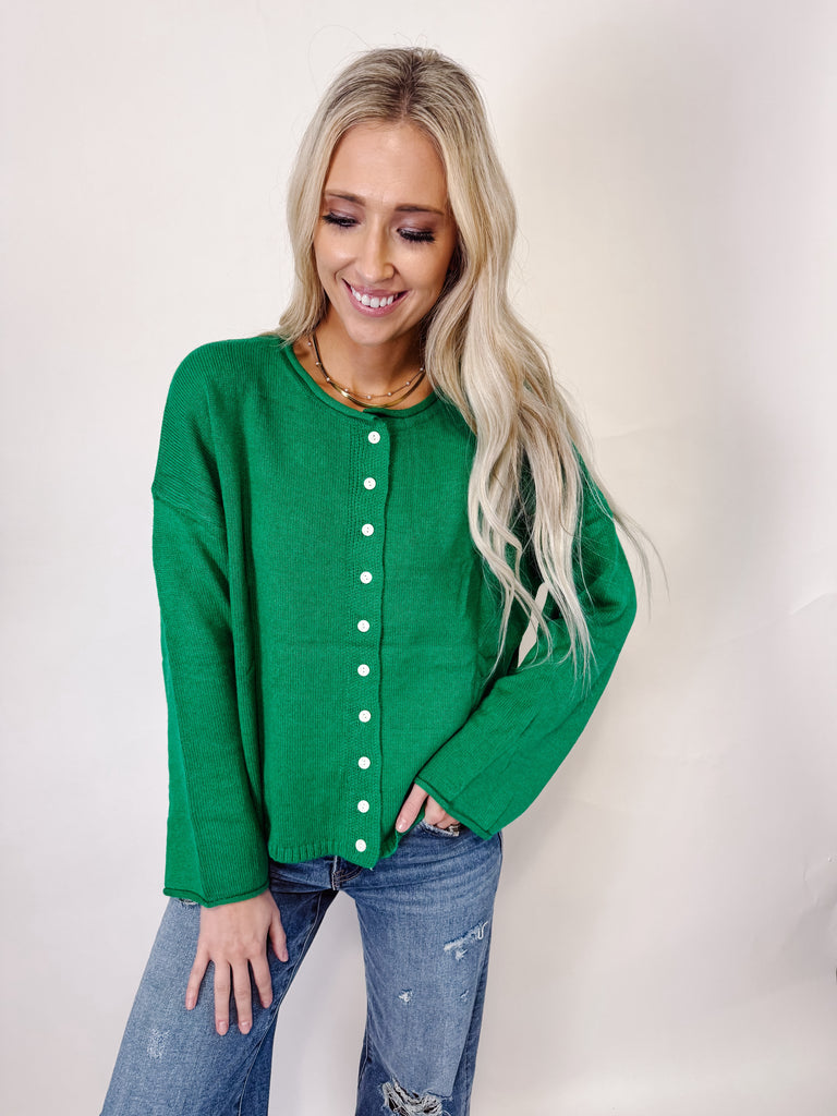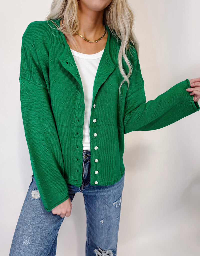 • The unique drop shoulder design gives a relaxed and stylish silhouette, making it a versatile piece for various occasions. Knit fabric with functional button. Wear it as a sweater or open cardigan.