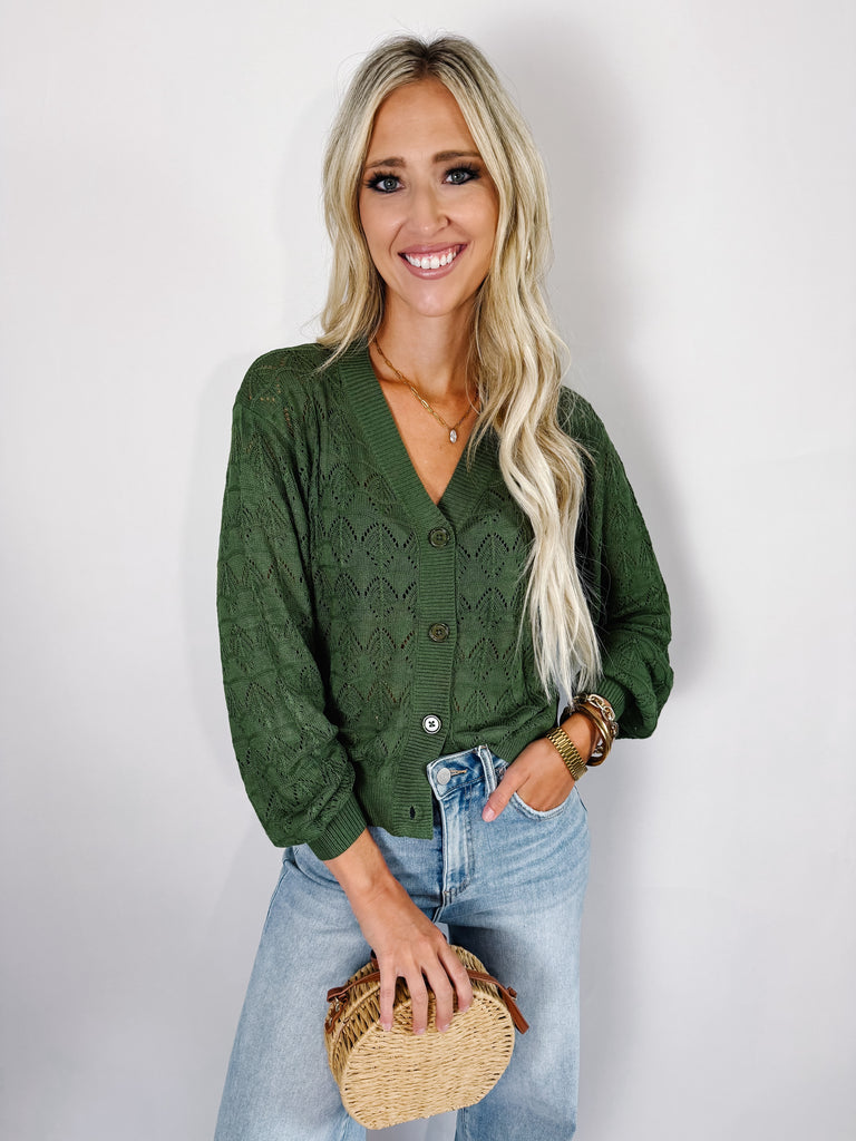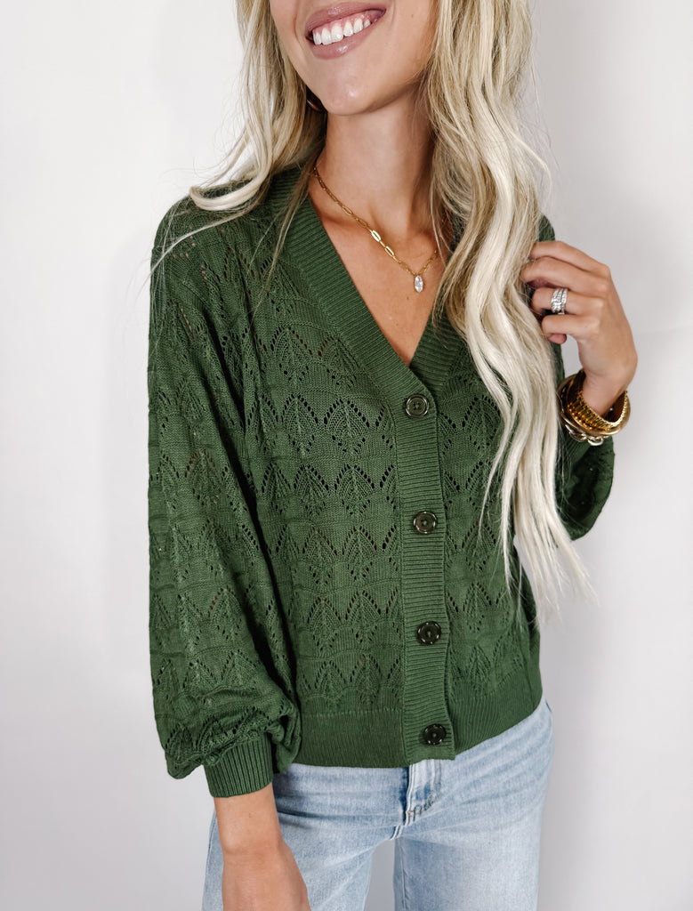 • This cardigan is fashionable with a crochet hollow-out silhouette