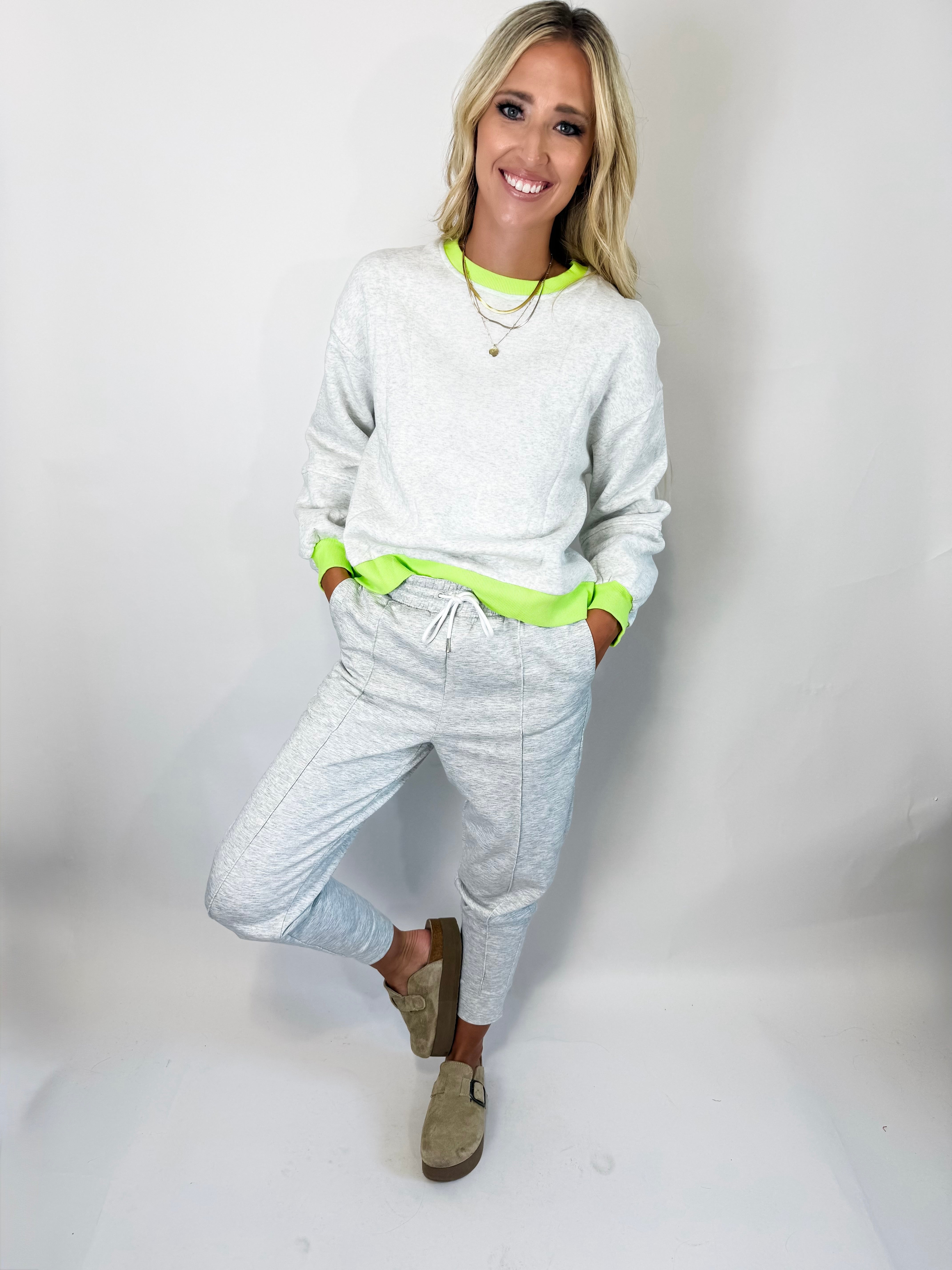 Light Grey Contrast Color Patchwork Drop Sleeve Loose Sweatshirt