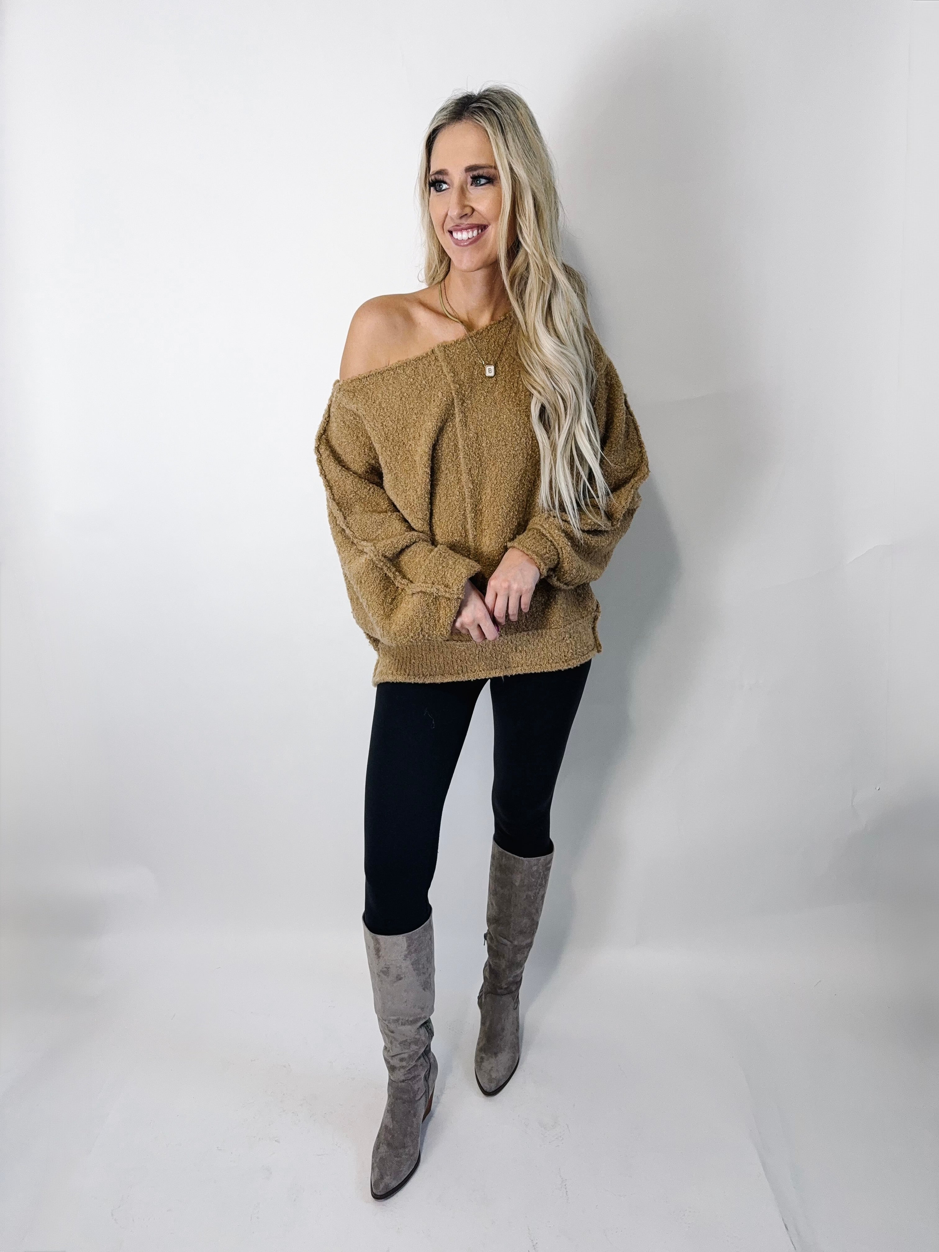 Loose Fit Exposed Seam Slouchy Boucle Sweater