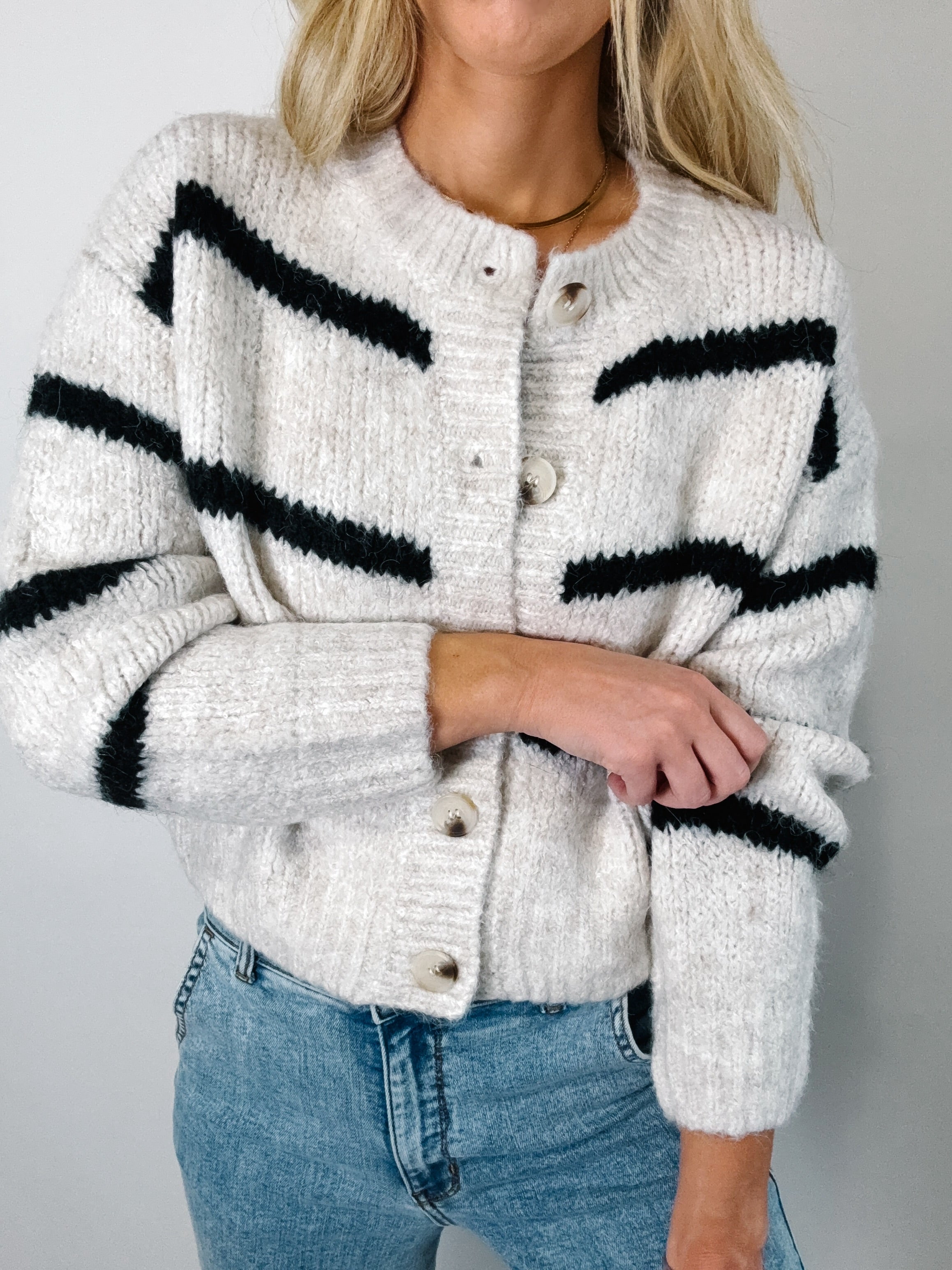 Stripe Button Cozy Sweater Cardigan