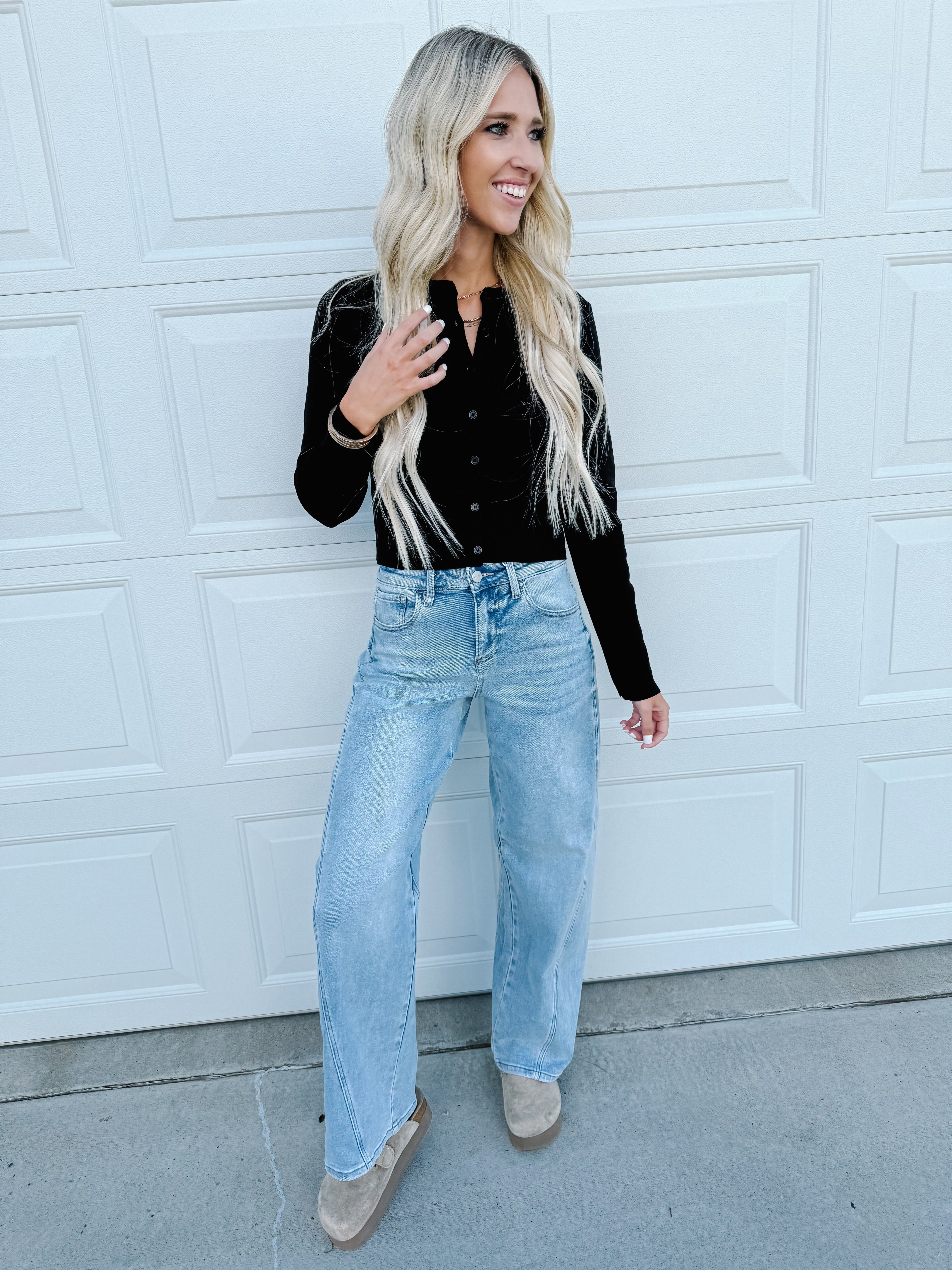 Introducing the Button-Front Crewneck Long Sleeve Cropped Cardigan, a versatile and stylish layering piece for any outfit. This cardigan features a classic crewneck design and long sleeves for a timeless look. The button-front closure adds a touch of sophistication, while the cropped length offers a modern and chic silhouette. Elevate your wardrobe with this must-have cardigan that effortlessly combines comfort and fashion for any occasion.
