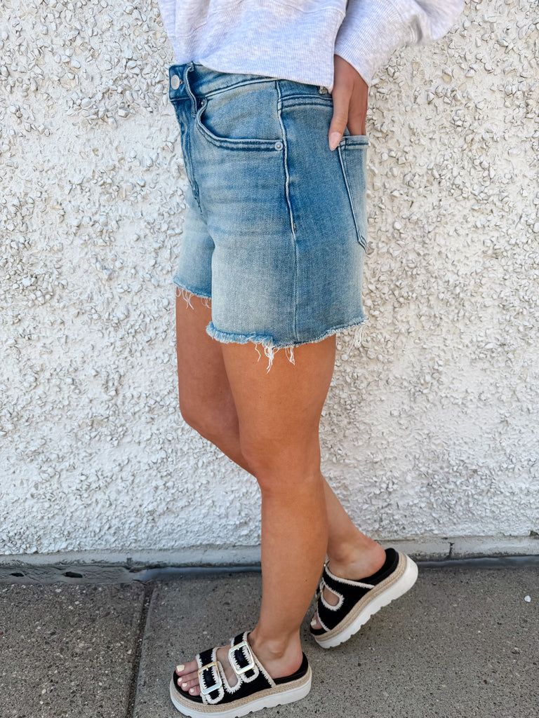 High Rise Frayed Hem Shorts