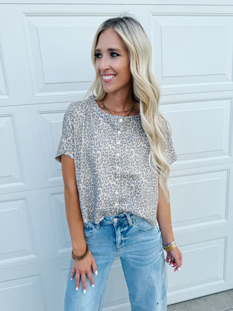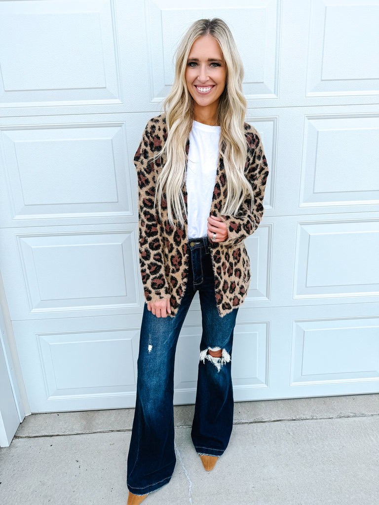 Khaki Leopard Drop Shoulder Knitted Cardigan