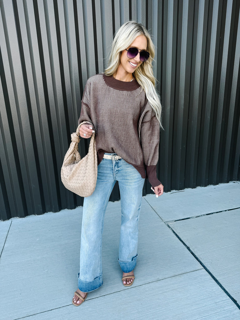Loose Fit Exposed Seam Slouchy Boucle Sweater