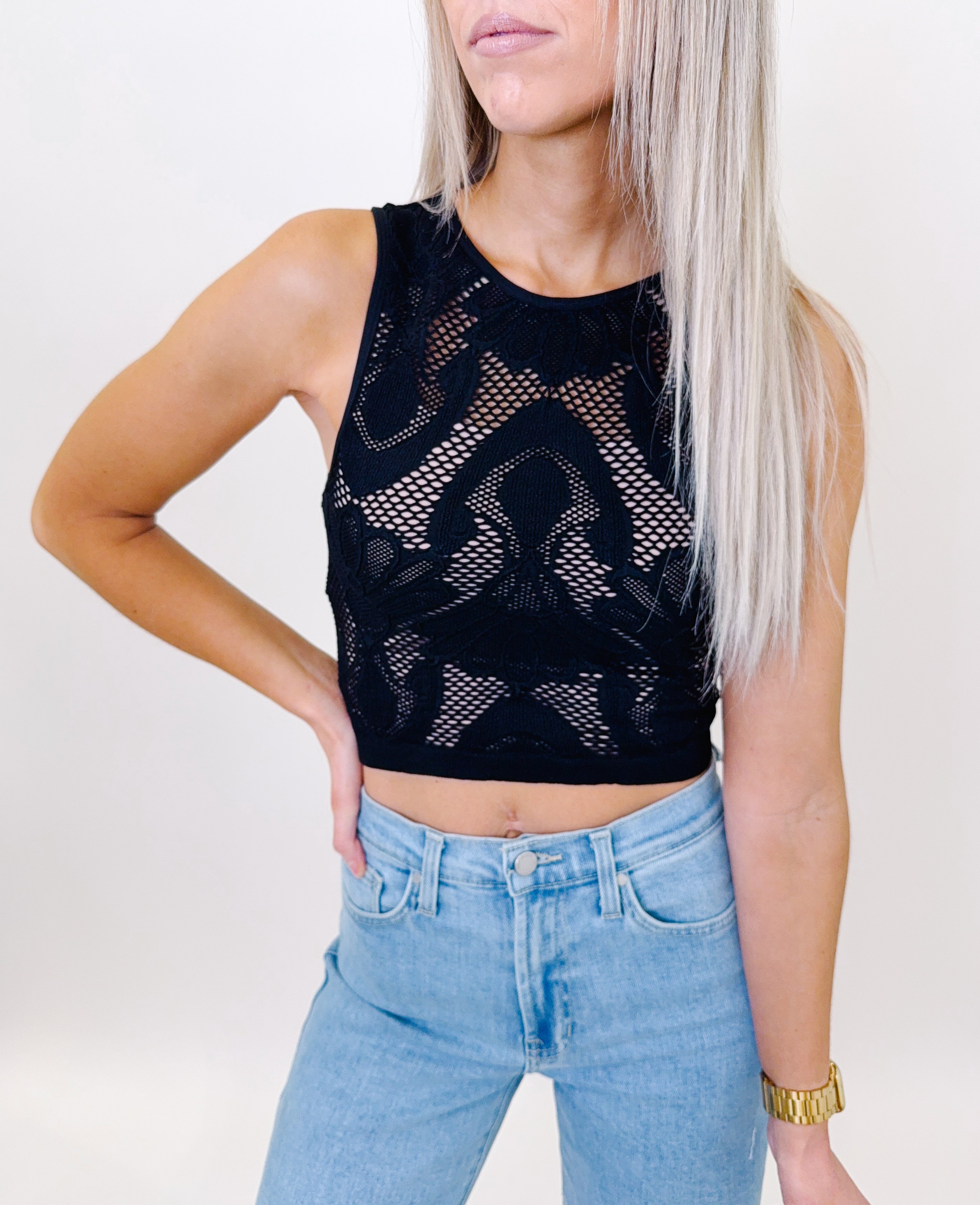 Take Your Pick Black Fishnet Tank