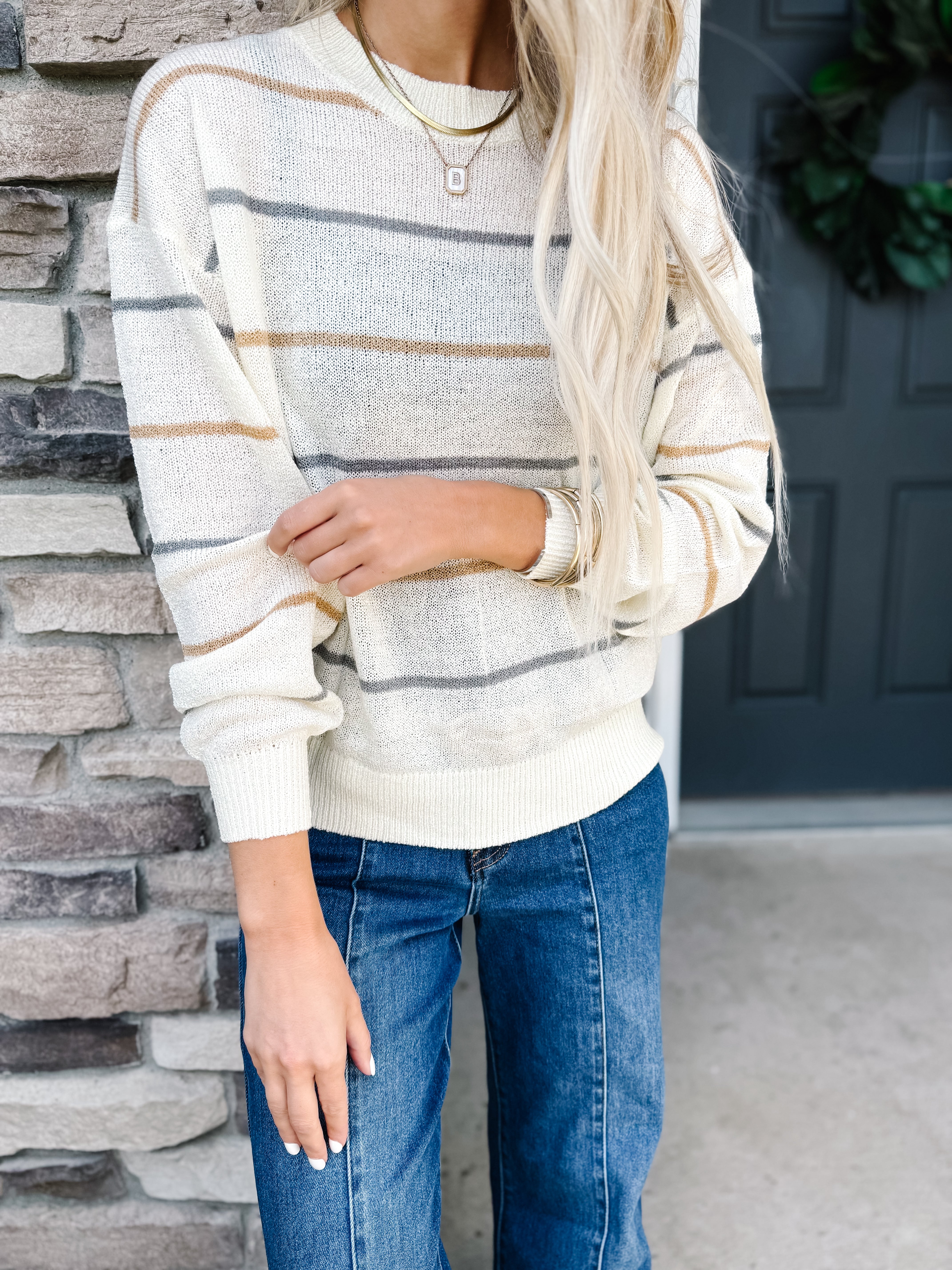 Multicolor Striped Ribbed Edge Sweater - Small is backordered and will ship as soon as it is back in stock.
