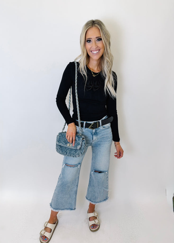 Black long sleeve top. Perfect for layering or to wear with all your denim bottoms, joggers or leggings.