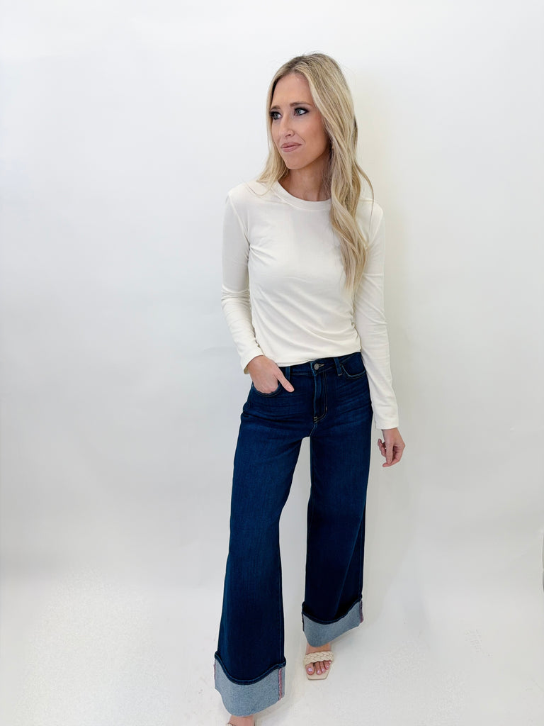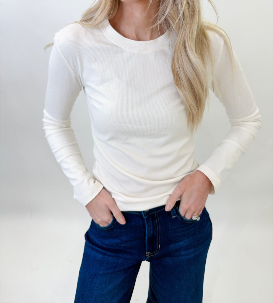 White long sleeve top. Perfect for layering or to wear with all your denim bottoms, joggers or leggings.