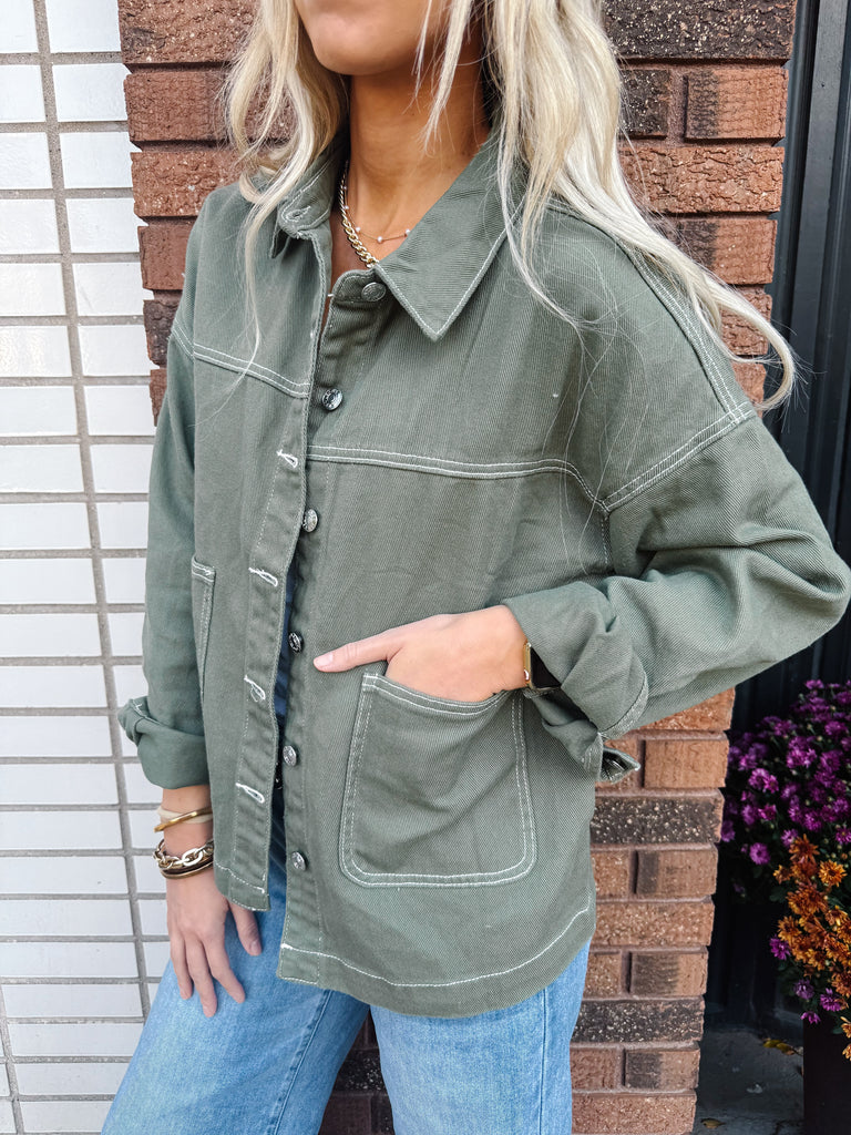 - The button front closure gives this jacket a classic vibe with a modern twist, making it versatile for both casual outings and more dressed-up occasions.