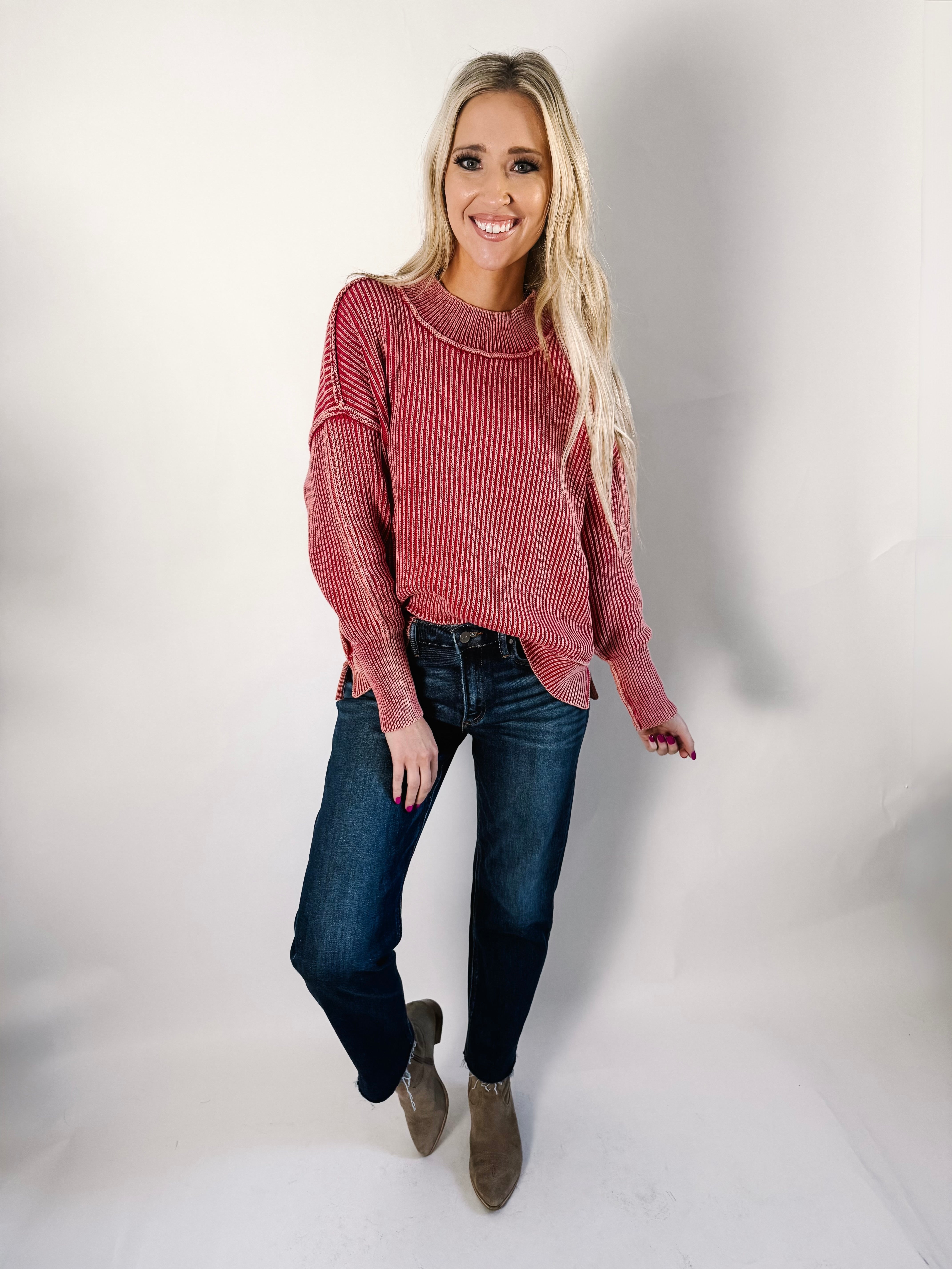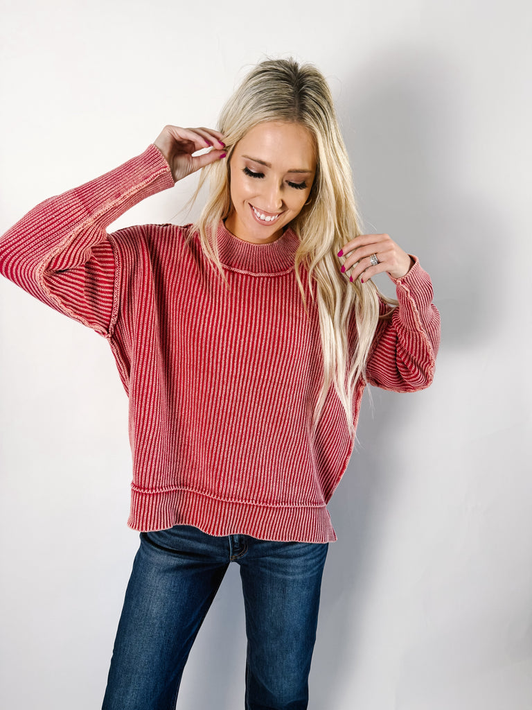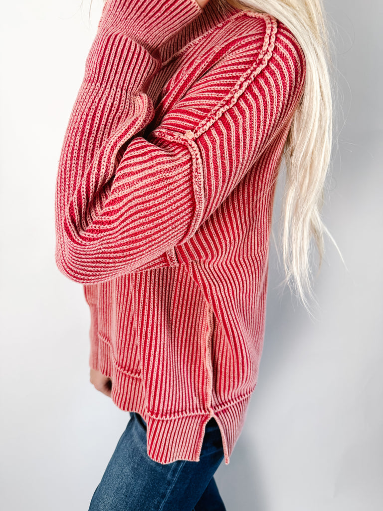 Red Side Slit Oversized Sweater